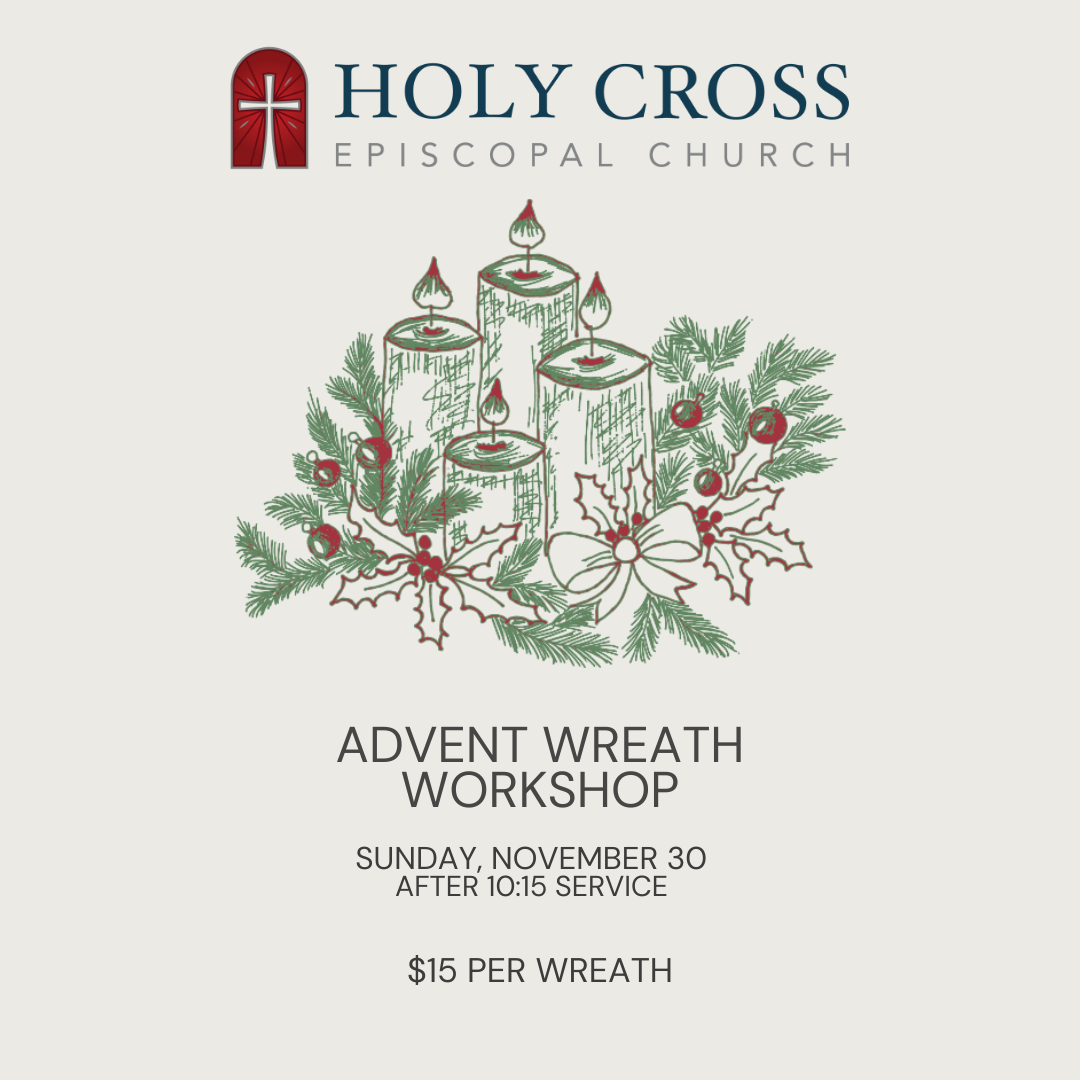 Join us as we kick off the Advent Season with live music, good food, and an Advent Wreath Workshop after the 10:15 am service! For $15, you will receive all of the supplies needed to build your own wreath to enjoy during this special time of year!